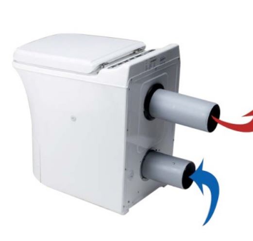 Celotni zrak, ki ga zahteva postopek sežiga, prihaja skozi ločeno cev od zunaj. Ne uporablja zraka iz sobe, kjer se nahaja stranišče, da bi se izognili morebitnemu znižanju sobne temperature. V primerjavi z drugimi napravami, ki so odvisne od zraka (prezračevalni ventilatorji, kamini, peči na drva), stranišče Comfort ustreza zahtevam za neprepustnost stavb (TEK10).